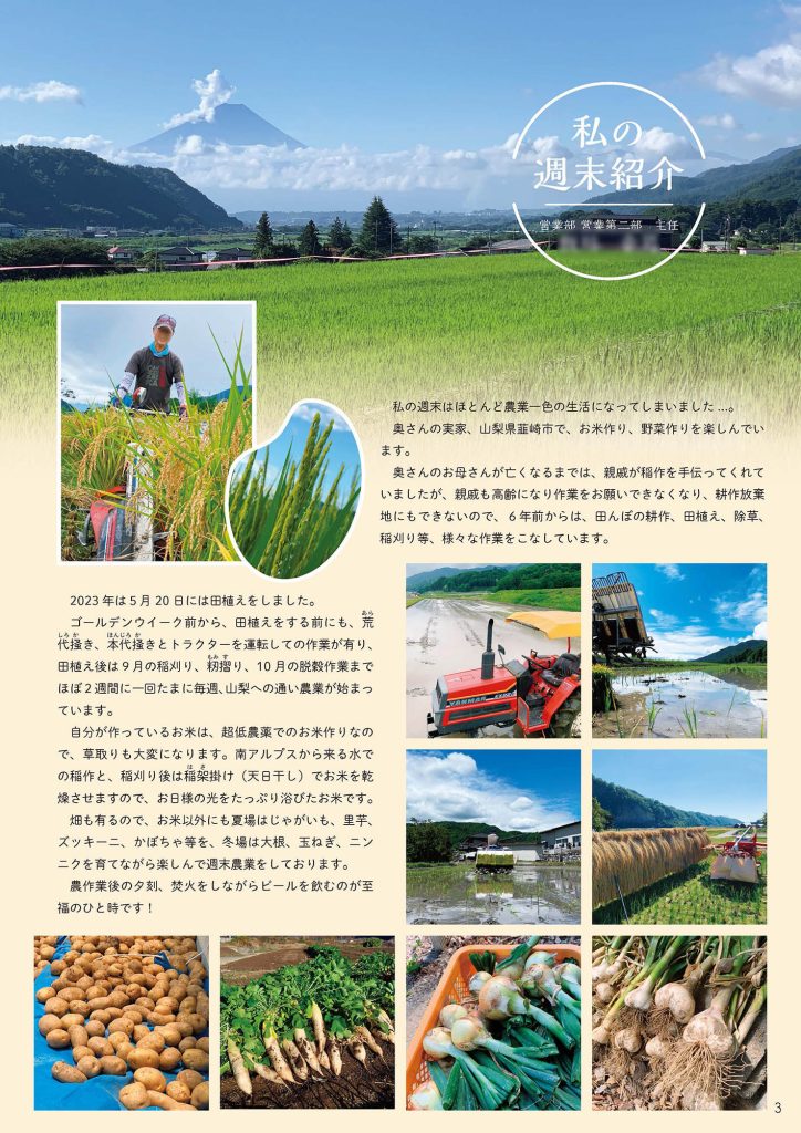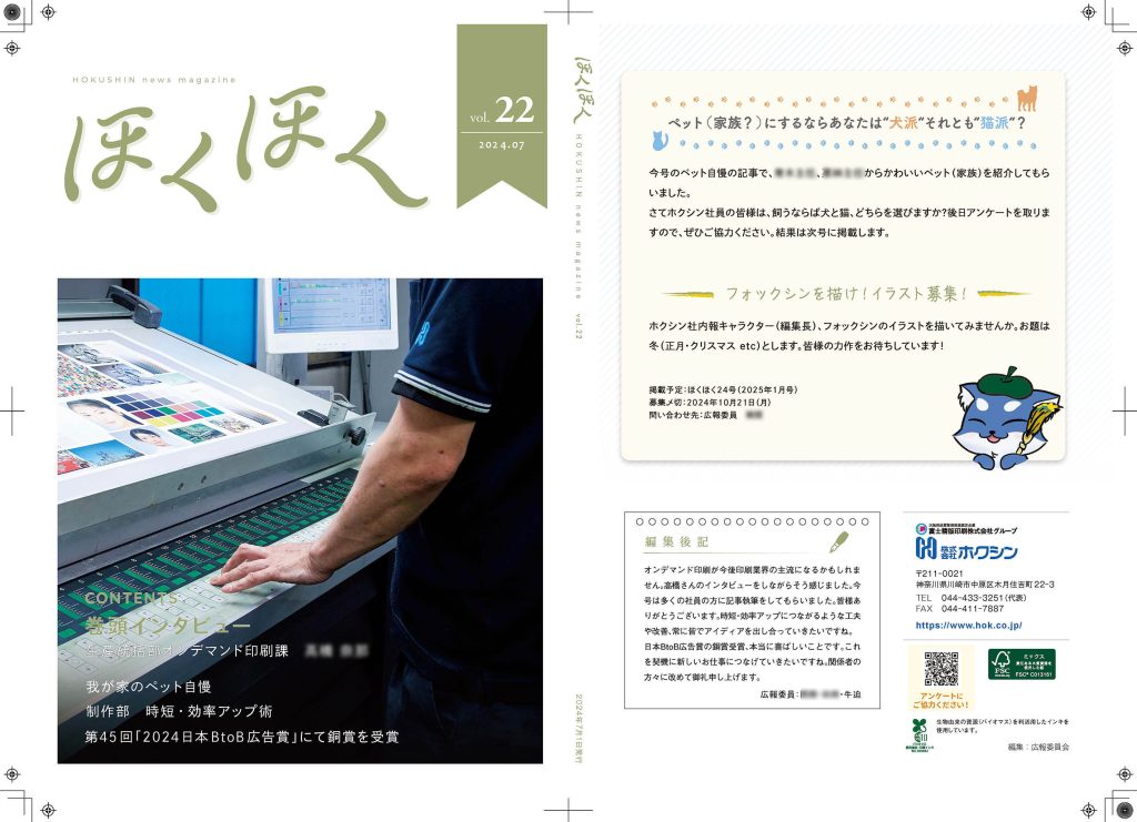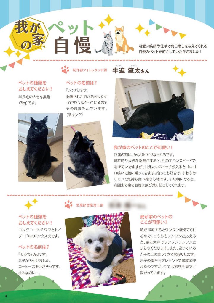 年4回の定期刊行物として、社内外の出来事や啓発の情報共有、従業員のモチベーション向上を目的に掲げ、企画から撮影、誌面デザインまでを一貫して手掛けていました。私は広報委員として、その全工程に携わり、制作を行ってきました。