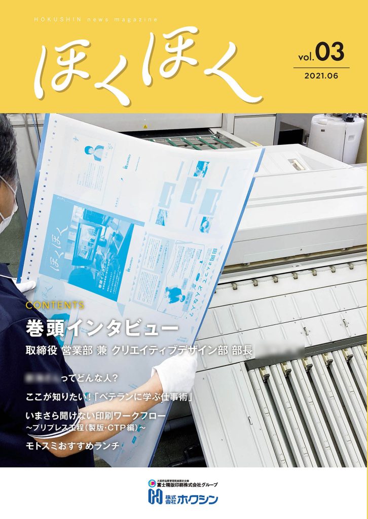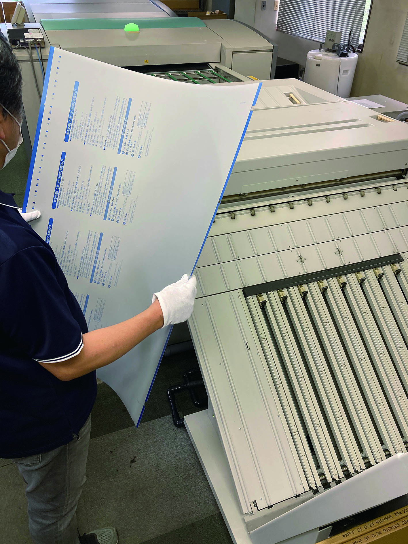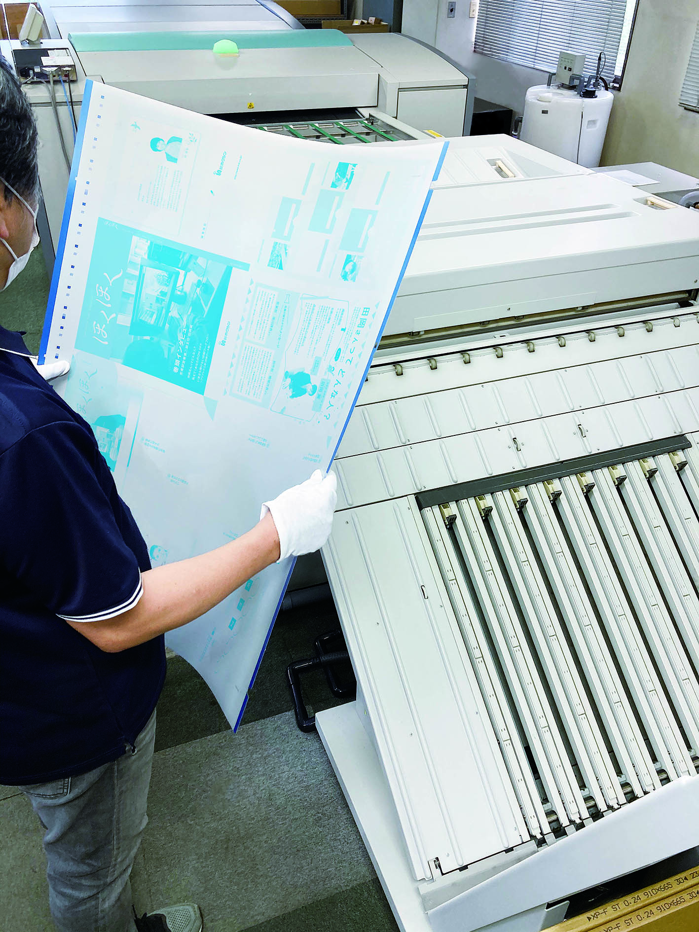 社内で製版、印刷、製本まで行います。社内案件とはいえ、誤植やミスが起きないようにしっかりチェックして下版します。社外の営業ツールとして取引先にも配布しており、受注に貢献した例もありました。